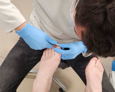 Les ongles incarnés : Conflit douloureux entre l'ongle et la peau, nécessitant une intervention précise pour vous soulager.